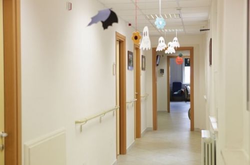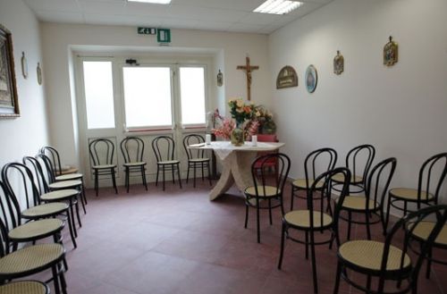 Al piano terra si trovano la reception, una sala di attesa, un ambulatorio e vari spazi per le attività giornaliere degli ospiti (la chiesetta, il locale adibito a barbieria e parrucchiera interno, sala per le attività motorie, refettorio, etc) e 8 camere da letto. Il primo piano è stato pensato per ospitare anziani che godono di una certa autonomia; qui trovano spazio 9 camere di Residenza Protetta e 6 camere di Casa di Riposo, tutte dimensionate secondo lo standard di legge e complete di servizi a norma del D.P.R. 236/1989 del D.P.R. 503/96. Al secondo piano invece troviamo 15 camere dedicate alla Residenza Protetta. Nel terzo piano abbiamo un locale destinato a stireria e lavanderia ed alcuni depositi.